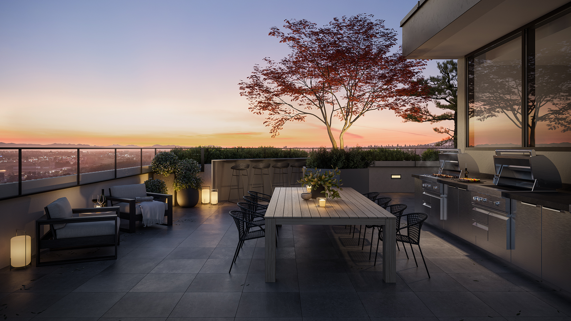 Gather with friends in the well-appointed amenity spaces and marvel as sunsets gently give rise to the dazzling city lights below.