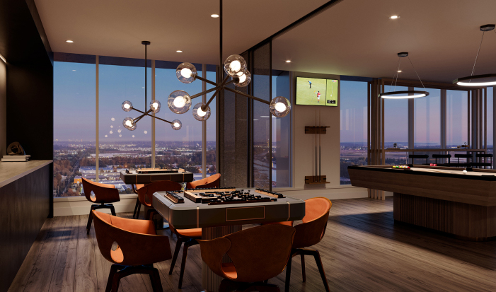 Show off the views from the upscale designer lounge. Entertain in the gourmet kitchen and bar area. Rack them up or share a game in the dedicated Mahjong room with custom built tables. When the fun is done, and you need to take care of business, Harlin has an executive co-working space furnished with plenty of seating, sound-proof pods, and private boardroom.