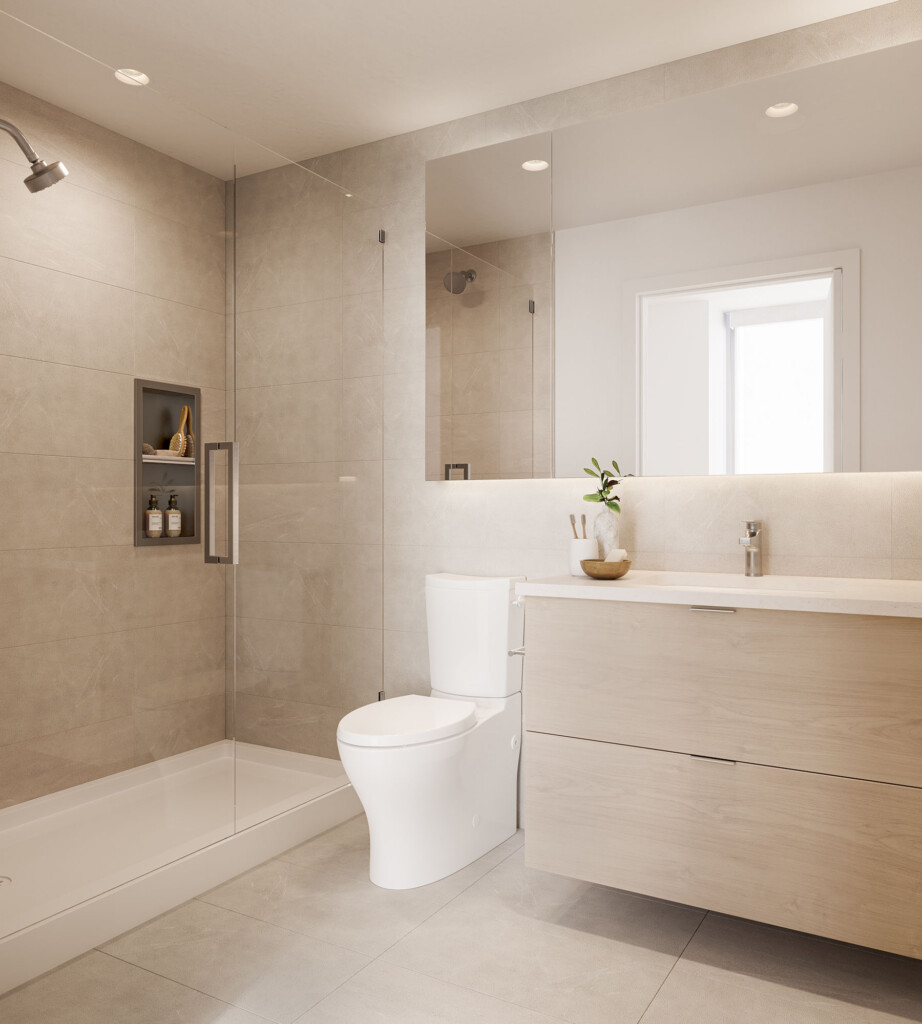 沉浸于 Harlin 精心设计的主卧卫生间内,享受独属于您的静谧时光。踏上舒适温暖的地面,让繁忙日程后的疲惫感瞬间消逝;在配备优雅灯带照明的洗漱台镜面药柜前开启自我护理;最后在装有壁挂雨淋式喷头的无框玻璃淋浴间内放松身心,尽享水疗般的体验。是时候放慢脚步,忘却烦恼,这是您值得拥有的珍贵时刻。